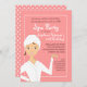 Uma bonito menina de olhos castanhos está ficando manicure enquanto escondido em seu roupão branco peludo por um dia de pampering no spa. Uma ideia excelente de festa de aniversário para adolescentes, adolescentes e formandos!
