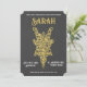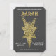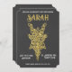 Ponha o tom para uma celebração misteriosa e mágica com este convite personalizado de festa de solteira, com um intrincado trabalho de arte de inspiração tarot a ouro, sobre um dramático fundo de couro preto. Perfeito para uma festa com temas perversos ou místicos, este elegante design homenageia a noiva no estilo. Personalizável com nome, data, hora e localização, é ideal para reuniões de clubes de tarot, saraus góticos, ou noites de enfeite com as garotas.