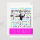 Convites de festas de tipografia de ginástica. Muitas palavras de ginástica rodeiam esta adorável ginasta. Ele tem estrelas decorativas e campos de texto personalizados para você adicionar suas informações de evento! As cores são brilhantes em rosa, azul e verde para destacar o preto. Além disso, você pode usar o botão "personalizar" para alterar o tamanho e/ou as fontes do convite. ©gollygirls.com