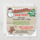 Biscoitos de Natal super divertidos Trocam ou Trocam convites de festas com Papais noeis, Árvore de Natal e um homem de pão-de-gengibre que foi mordido em fundo de madeira com neve. Excelente para uma festa de Natal para crianças ou adultos. Ilustração desenhada à mão por McBooboo.