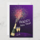 Anel no Ano Novo em estilo com esta Feliz ano novo roxa e cinza prateada! convite com uma garrafa de champanhe arrombando com fogos de artifício e texto de cinza, junto com dois copos de champanhe, sentados em uma base de bola de discoteca e riachos listrados de roxo mais claro com estrelas nela. O design é transferido para trás, onde você pode personalizar os detalhes com suas próprias informações. Se precisar de ajuda ou se precisar de itens correspondentes, envie um email para niteowlstudio@gmail.com.