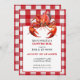 Belo Convite de festas de marisco de verão com lagosta vermelha grande e Mesa vermelha e branca russa. Personalize com os detalhes do seu partido.