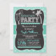 O tema da praia tropical de verão convida com o quadro retro para ver fontes no padrão dos círculos de turquesa aqua. O convite inclui coquetel de aparência de giz e palmeira com elementos de design ric rac.
