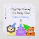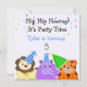 Um leão, hipopótamo roxo e um legal tigre vestindo chapéus prontos para um sotaque festa de aniversário este divertido convite. Personalize com todas as suas informações conforme desejado. Deixem as crianças entusiasmadas com esta festa de aniversário.