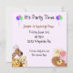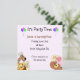 Um conjunto bonito de animais de zoológico prontos para se divertir. Girafa, leão, urso, macaco, coelho e pássaro acenam este convite de festas aniversário de criança divertido. Personalize com todas as suas informações conforme desejado.