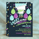 Se você está tendo esta festa divertida e criativa você vai precisar de um convite divertido e criativo! Este design apresenta um bolo invertido com velas. Há balões que também estão de cabeça para baixo com as palavras "dentro de cabeça para baixo louco para trás"! As cores são azul, verde e roxo e excelente para qualquer gênero.