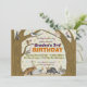 Os passarinhos pequenos dizem, esse alguém estão tendo um aniversário! Este convite de festas lunático da floresta é enchido com os animais amigáveis em seus chapéus do partido-- apronte para o divertimento. Um fundo afligido das bolinhas, um tipo festivo e umas ilustrações animais do vintage-estilo enchem este convite com o encanto da floresta… que um perfeito procura seu partido.