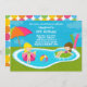 Convite bonito do aniversário da festa na piscina dos miúdos. As características caçoam na piscina em um dia de verão bonito com limonada e um guarda-chuva. Alguns elementos JDDigiDesign