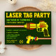 Incêndios aos seus convidados com esta festa de aniversário divertida convidando com armas legal de laser e tipografia vibrante contra um fundo verde escuro. Basta adicionar os detalhes do seu evento neste modelo fácil de usar para torná-lo um convite de tipo único.