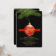 Um cartão elegante do feriado com um fundo escuro e um bonito, vermelho, ornamento da árvore aproximadamente a ser colocado na árvore. Aperfeiçoe para um partido do aparamento da árvore! Freepik.com (/index.php? goto=41&idd=677299&url=aHR0cDovL3d3dy5mcmVldmVjdG9ycy5jb20vY2hyaXN0bWFzLW9ybmFtZW50cy8=).