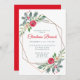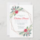 Convite de brunch de Natal elegante, com buquês de aquarelas de flores, bagas, sagradas e verdes, numa estrutura geométrica de cobre dourado. Personalizar facilmente o tipo de evento (brunch, janta, chá, etc.), bem como outros detalhes do evento em roteiros e tipografia modernos, vermelhos e verdes.