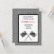 Um convite do divertimento para algum partido do carro de corridas. Caracteriza uma beira verificada preto e branco. Duas bandeiras checkered sentam-se na parte inferior quando a parte superior for para sua informação do partido.