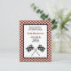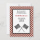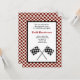 Um convite do divertimento para algum partido do carro de corridas. Caracteriza uma beira vermelha e branco verificada. Duas bandeiras checkered sentam-se na parte inferior quando a parte superior for para sua informação do partido.