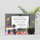 Cheio de diversão, esses convites incluem um conjunto de chá, um gato, guloseimas de Halloween e mais feito em um esquema de cores divertidas de preto, laranja, verde e púrpura!