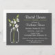 Frasco de pedreiro com flores brancas para um partido de chá de panela