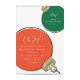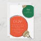 Ilustração moderna de um enfeites de natal vermelho e verde estilo retrô com as palavras "Oh Joy" na escrita branca e na tipografia contemporânea. Estes convites são perfeitos para os grupos de intercâmbio de Enfeites de natal.