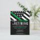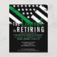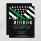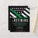 Esta design de aposentadoria possui uma bandeira militar com listras pretas e brancas, e uma fina faixa verde de linha também. O texto "A lenda está se aposentando" fica acima do nome do sargento aposentado, capitão, soldado, tenente ou general.