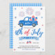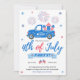 4 de julho fogos de artifício e convite de festas de caminhão. Vermelho clássico, branco e azul.