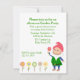 Convite de festas exterior colorido, com os gráficos de flores pequenas bonito, através da parte inferior, e um gnomo feliz do jardim, na parte inferior direita. Personalize o texto verde para seu evento.