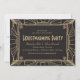 O art deco do vintage inspirou os convites do housewarming do preto e do ouro projetados por Shelby Allison.