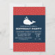 Procurando um convite do aniversário do tema da baleia para meninos? Considere esta baleia branca um de caracterização na parte superior com fundo das bolinhas.
