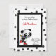 Um convite do divertimento para algum partido de patinagem. caracteriza uma beira preto e branco do polkadot em torno do convite. Uma imagem de uma panda preto e branco com os skates de gelo vermelhos senta-se na parte inferior. O texto é feito no preto e no vermelho de coordenação e é completamente customizável.
