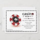 Um belo convite para uma festa de casino com um chip de casino sortudo e uma borda pontilhada.