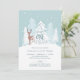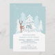 País das maravilhas azul do inverno do primeiro aniversario, convite de Onederland com acentos bonitos. Flocos de neve pequenos no fundo. Em uma parte dianteira com um cervo agradável e os pinheiros. Ajuste um doce e o tom mágico para o partido com este convida. Aperfeiçoe para o primeiro aniversário do seu boneco de neve pequeno.