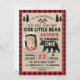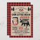 Este convite do primeiro aniversario dos meninos do lenhador caracteriza um urso bonito, algum machado, pinheiros, algum texto e divisores simples. Eu quis criar uma coleção do convite do aniversário do lenhador para a loja porque eu amo o estilo e o tema. Há mais convites escolher na loja, com e sem uma foto. Alguns são especificamente design para um bebê de um ano, quando este convite puder ser alterado para várias idades. O convite do primeiro aniversario do lenhador deste menino está pronto para ser personalizado e é apropriado para o partido de primeiro aniversario de um menino.