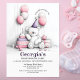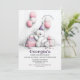 Torne o seu primeiro aniversário verdadeiramente inesquecível com este adorável convite de festas, com um ursinho alegre de pelúcia num chapéu de aniversário roxo, sentado ao lado de um bolo de aniversário rosa e rodeado por balões de festa. Perfeito por convidar amigos e entes queridos a se juntarem à alegria do dia especial do seu bebê, esta design encantadora dá o tom para uma celebração doce e memorável. Uma variedade de tipos de papel e estilos de canto estão disponíveis para seus convites exclusivos, juntamente com a opção de download se você preferir um formato digital.