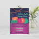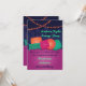 Uma divertida e colorida Noites árabes lança um convite que é excelente para festas de aniversário e prostitutas e outras celebrações. Esta design é divertida e colorida com rosa, cor de rosa, azul e laranja. Consiste em um design com travesseiros em uma almofada de saguão e luzes amarradas. Ao fundo está uma simples paisagem urbana árabe.