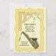 Jazz acima de seu partido com estes convites de festas retros do saxofone do jazz do estilo. Use o modelo fácil para adicionar sua informação de evento. A parte traseira do convite caracteriza um teste padrão da flor de lis do ouro. Excelente para festas de aniversário! Visite www.zazzle.com/enchantedbayou* para cartões temáticos de Cajun e de Nova Orleães, convites e presentes.