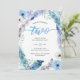 As penas e flores azuis e roxas aparecem neste lindo convite de festas de segundo aniversário de vassoura com folha de volta.