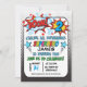 O convite do segundo aniversário do super-herói deste menino caracteriza um grande número, desenhos animados como palavras e elementos em um fundo branco e preto. Eu quis criar especialmente convites do super-herói de algum menino novo para um segundo aniversário porque eu não tenho alguns na loja neste momento. A versão similar deste design com uma fotografia está igualmente disponível na loja. O convite do super-herói do segundo aniversário da foto deste menino está pronto para ser personalizado e é apropriado para o partido de segundo aniversário do super-herói de um menino.