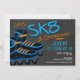 Vamos SK8 e comemore! Este convite divertido apresenta um fundo de quadro e um par de pás de pás em azul e laranja, tanto na parte frontal como na parte traseira. Perfeito para a festa de aniversário de patinagem ou de patinagem.