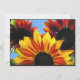 Este convite a um partido do solstício de verão caracteriza três girassóis brilhante coloridos iluminados pela luz solar que flui através das pétalas. As flores indicam uma paleta lindo do ouro, do amarelo, da laranja, do vermelho e do marrom. As folhas do verde e o céu azul terminam esta composição da cor e formam-na. Um mais girassol decora o verso. Todo o texto na parte traseira pode ser personalizado com sua informação pessoal do partido.