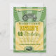 O trator está alinhado e pronto para uma boa festa de Fazenda. Este Convite de festas de Trator, ao estilo de vintage, é cheio de nostalgia e charme. Uma explosão de cores amarelas e verdes, antigas ilustrações de trator e celeiro e escrevendo divertidas são a aparência perfeita para o dia da sua festa na fazenda.