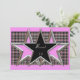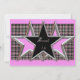Este Doce Convite Estrela de 16 Festas apresenta estrelas com um olhar cromado sobre um fundo de xadrez rosa e preto.