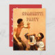 Convite de festas dos espaguetes que caracteriza uma imagem do século XIX do vintage da Biblioteca do Congresso. Duas pessoas da classe trabalhadora estão tendo os espaguetes. Fácil personalizar ambos os lados deste cartão ocasional do convite com detalhes do seu próprio partido da massa.