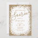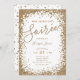 Convite à moda da véspera de Ano Novo que caracteriza o quadro dos confetes do brilho do ouro do falso com um tipo moderno disposição e que combina o teste padrão na parte traseira.