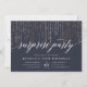 Nossas convites de festas surpresa festivas em cor-de-rosa-pincel-chic e azul-marinho apresentam cordas verticais da folha de ouro-rosa brilhante através do topo, e a "festa surpresa" na tipografia de gráficos de caligrafia. Personalize com seus detalhes surpreendentes de comemoração em branco; pode ser usado para qualquer ocasião, como festas de aniversário ou festas de aniversário.