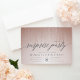 Nossas convites de festas surpresa festivas em cor-de-rosa-pincel-chic e ouro-rosa apresentam cordas verticais de cinza brilhante em folha de ouro-rosa, ao longo do topo, e "festa surpresa" em tipografia com script de caligrafia. Personalize com seus detalhes surpresa de celebração abaixo em cinzas elegantes; pode ser usado para qualquer ocasião, como festas de aniversário ou festas de aniversário.