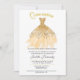 Um glitter dourado com glitter de ouro, cor d'água do convite de festas Quineanera com padrão de local em vestido. O gradiente rosa suave é transferido para o final do convite. Personalize com seu nome nesta assinatura de script em contraste com a tipografia de texto clássico resistente do Goudy.