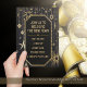 Este charmoso, caprichoso convite de festas de Ano Novo tem um toque de um talento de Arte Deco com uma magia elegante e vibração etérea. Todos os designs desta coleção se coordenam a preto com um fundo elegante e sofisticado, em forma de papel, sobrecarregado com estrelas douradas brilhantes e detalhes: cartões de correspondência, convites e muito mais. —> NOTAS: Personalize as informações da parte no verso do convite com os detalhes pessoais da sua parte. Não é possível alterar a mensagem na parte frontal deste cartão. Isto não é um cartão de folha.