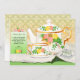 convite de festas de chá lindo com um belo pote de chá, xícara de chá e chá, todos sentados em um pano de mesa esperando sua convidada chegar. Além disso, veja este conjunto de equipes design na nossa seção de cartões de saudação diária.