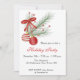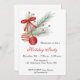 Convite de fim de ano com Enfeites de natal em branco e vermelho, atados com um arco e um sotaque esverdeado. Convites vêm com envelopes e sua escolha de papel.