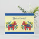 O Convite de festas escandinavo de todas as Ocasiões pode ser usado para Feriados de Natal, Chás, Aniversários e muito mais! Cavalos Dala Suecos Coloridos em uma Casa Floral Cheerful. Facilmente personalizado adicionando seus próprios detalhes nos espaços fornecidos. Adicione um toque de talento de Arte Folk Europeia ao seu próximo evento.