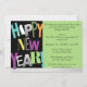 Belo Convite de festas preto e Verde limão de fundo véspera de ano novo noturna apresentando, "Feliz ano novo" aparece ao lado em várias fontes coloridas. Personalize com sua saudação pessoal, nomes de família e nomes individuais.