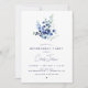 Convite de festas azul de aposentadoria floral em estilo minimalista com buquê de flor azul e padrão de volta. Você pode personalizar este convite com seus próprios detalhes na seção "Personalizar este modelo".