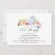 Convite de festas de chá elegante e feminino. Este convite de festas de chá floral apresenta ilustrações de aquarela de bule, chá, rosas de marfim, rosas cor-de-rosa e mirtilo com fundo de padrão floral. Perfeito para festas de chá, jardim e primavera.